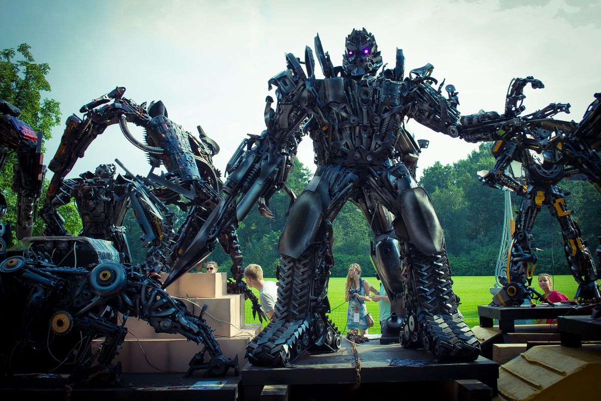 На входе всех посетителей встречали вот такие мощные трансформеры: