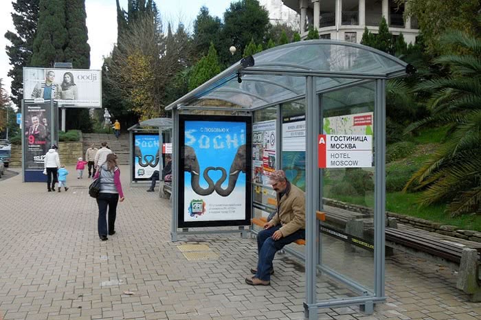 Около пяти лет в Сочи длится эпопея с обустройством остановок общественного транспорта. Одни менялись несколько раз, другие, как будто совсем не в городском управлении. В итоге установили около 300 остановок, которые, по задумке сочинских архитекторов, должны были стать достойной заменой старым и гармонично вписаться в городской ландшафт. Остановочные павильоны были привезены из Франции и стали для нас настоящим бедствием. В городе Пуатье, откуда мы скопировали дизайн, стеклянные павильоны не являются проблемой, так как там летняя температура в среднем ниже на 5 градусов, чем в Сочи.