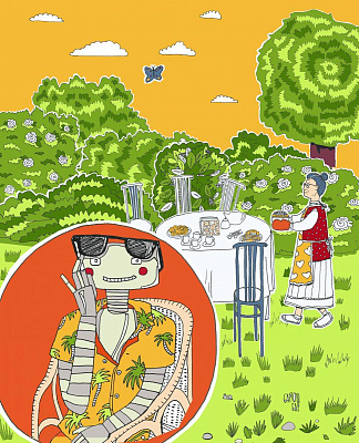 – Присоединяйтесь к нам, уже почти все готово! Сейчас и Петровна подойдет с Тимошей… Осталось только красиво расставить угощения… Хорошо, что есть Николя, он знает правила этикета!..