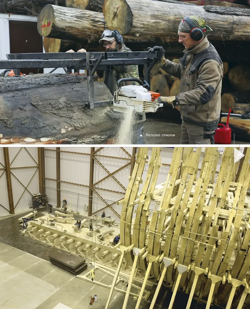– Пока основной материал – это дуб. Дуб требуется крупноразмерный, и это одна из основных проблем. Вся современная промышленность нацелена на трехметровые дубовые кряжи на паркетную доску, а нам нужны стволы до 12 м, причем крупномерные. Бревно должно быть минимум 60 см в диаметре на тонком конце, то есть внизу – около метра. Важно, чтобы ствол был без пороков: с целой сердцевиной и крепкими сучьями, не проеденный жуком-древоточцем.