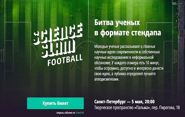 «Пальма» пройдет научный стендап о футболке. Ученые расскажут о популярном виде спорта с точки зрения разных научных дисциплин: экономика, география, робототехника. У каждого слэмера есть 10 минут, чтобы остроумно и интересно донести свою идею, а публика определит лучшего аплодисментами.