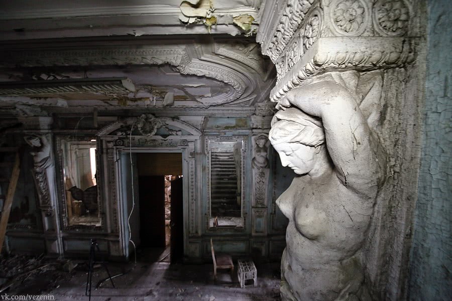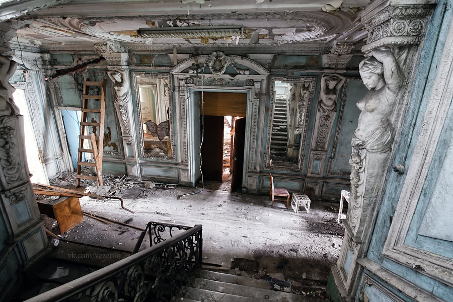 Бродить, конечно, по обваливающимся лестницам я не рекомендую... Можно посмотреть на особняк вот здесь (3d-панорама):