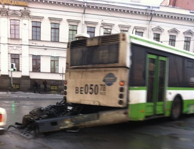 Петербурге утром в понедельник, 11 февраля, прямо на проезжей части у одного из городских автобусов вывалился двигатель.