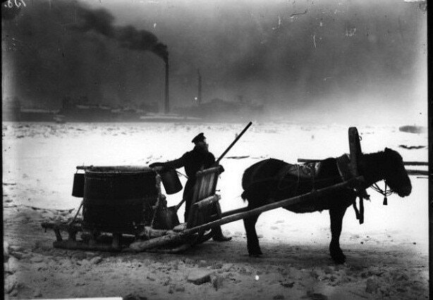 Существует несколько версий происхождения этой этой поговорки, но самой правдоподобной кажется та, что связана с историей петербургских водовозов. Цена привозной воды в XIX веке составляла около 7 копеек серебром в год, и конечно всегда находились жадные торговцы, которые завышали цену с целью нажиться. За это незаконное деяние у таких горе-предпринимателей отнимали лошадь и заставляли возить бочки в тележке на себе.