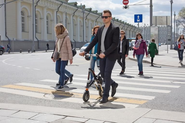 Увидев, как человек на самокате переезжает пешеходный переход, можно подумать, что он нарушает все правила. Однако «гонщики» вполне имеют на это право, по крайней мере на регулируемых светофорами переходах. Учитывая, что самокатчик для ПДД – обычный пешеход, то и правила к нему такие же. Согласно ПДД (глава 4, пункт 17.2), «пешеход может переходить (пересекать) проезжую часть дороги по подземному, надземному пешеходным переходам, а при их отсутствии – убедившись, что выход на проезжую часть дороги безопасен». Но с точки зрения безопасности переезжать пешеходный переход – довольно опасно и безрассудно. Скорость выскакивающего на самокате человека трудно предугадать, а значит, возможны последствия. Лучше всегда спешиваться при переходе, на то он и пешеходный.