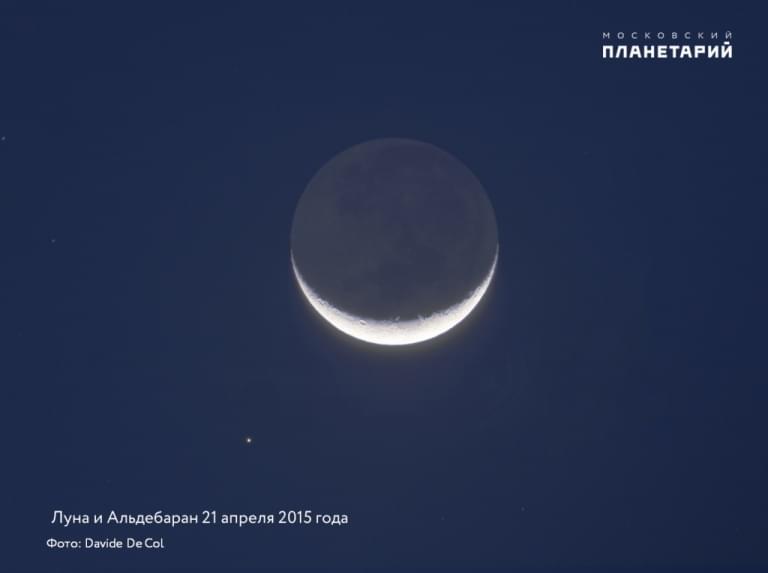 Сближение – видимое прохождение одного небесного объекта вблизи другого на небесной сфере. Угловое расстояние между светилами при сближении составляет менее 6–7 градусов. Альдебаран является главной звездой созвездия Тельца и хорошо различима по заметному красноватому оттенку.
