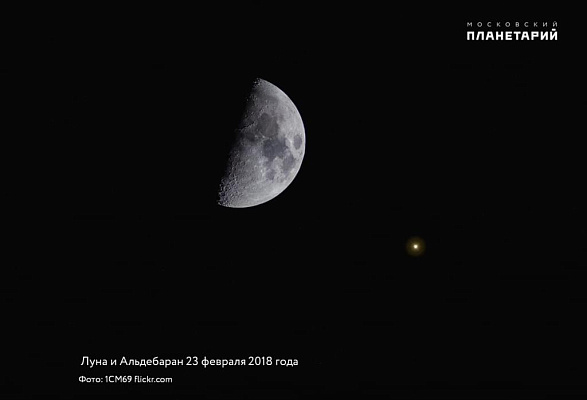 17 января в 21:20 Луну и звезду Альдебаран будет разделять чуть больше градуса. Астрономы поясняют, что один градус — это расстояние между светилами, равное двум видимым диаметрам Луны.