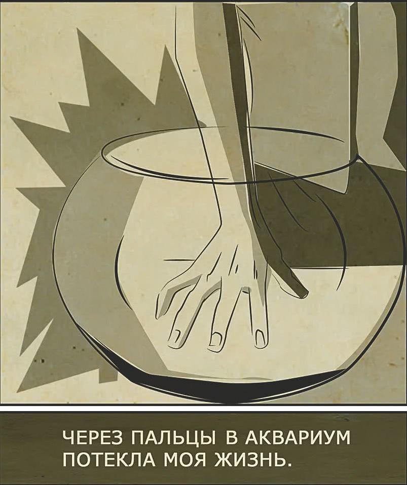 Нет, меня не ударило током. Не было никаких искр или вспышек. Но ощущение беспомощности было один в один. Тело вдруг перестало меня слушаться. Точно в кошмарном сне, когда отчетливо понимаешь, что вот-вот произойдет нечто непоправимое, пытаешься как-то избежать этого, но события все равно идут своим чередом, вопреки всем усилиям. Меня странным образом передернуло, и я ощутил, да, каждой клеточкой прочувствовал, как, собираясь со всего тела, из каждой самой дальней клеточки, каждого самого маленького синапса, через пальцы в аквариум потекла моя жизнь. В этом-то и заключалось сходство с ощущением, которое испытывает человек, схватившийся за оголенные провода, силящийся отцепиться от них, но не могущий разжать пальцы. Вынужденный слушать, как скрипят и крошатся его зубы. Как, точно хорошо прожаренный попкорн, лопаются его глаза.