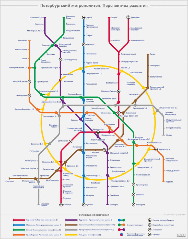 По новой схеме Смольного, участок предполагаемой кольцевой линии — перегон от «Большого проспекта» до «Лесной» появится между 2023 и 2028 годами, остальная часть линии будет построена еще позже.