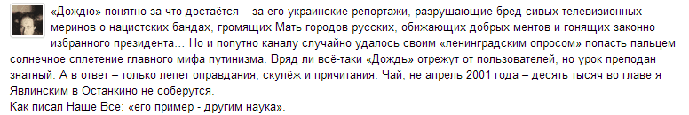 "Но, как по мне, так это только на руку "Дождю". Знатный пиар) ".