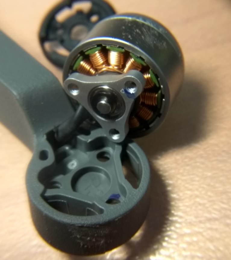 Удар, видимо, пришёлся в двигатель, и он вращается с
