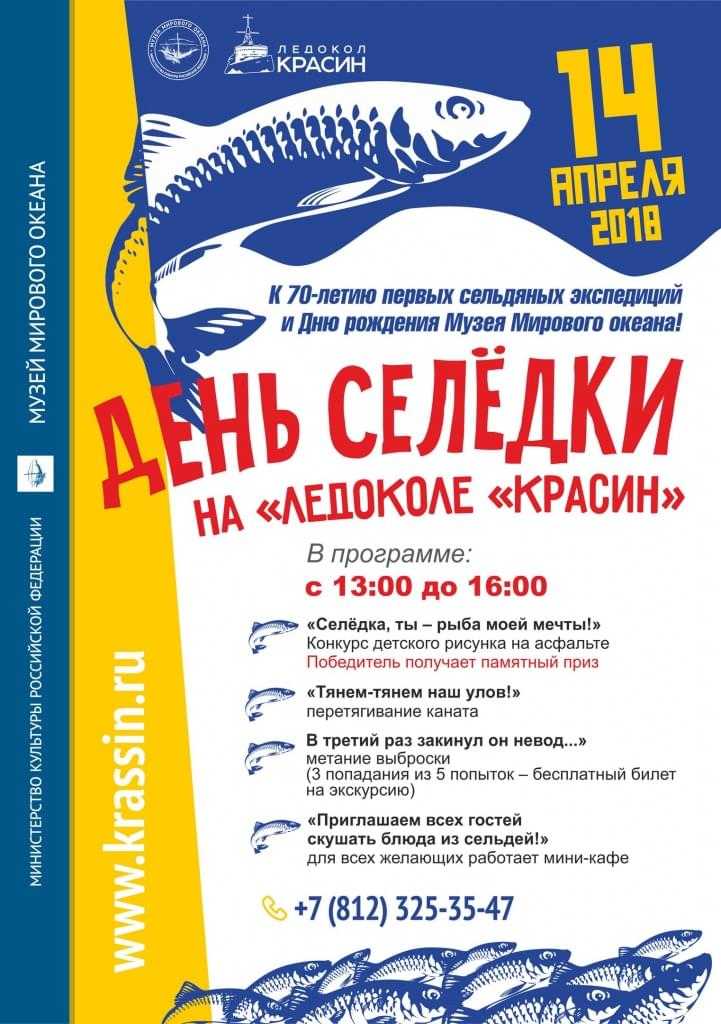 Именно так его теперь планируют отметить на «Красине». Гостей ледокола-музея с 13 до 16 часов ждут морские конкурсы для взрослых и детей, увлекательные рассказы про рыбу, и, конечно же, бутерброды с селедкой!