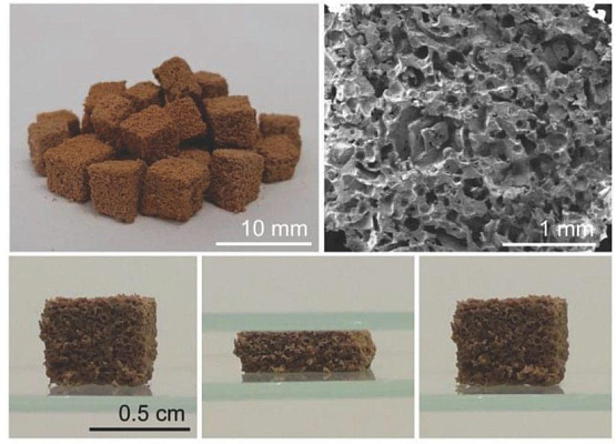 «Губка» сделана на основе серы и масла канолы — оба этих вещества гидрофобны и отталкивают воду. При соединении они образуют гель, способный очистить воду от нефтепродуктов.