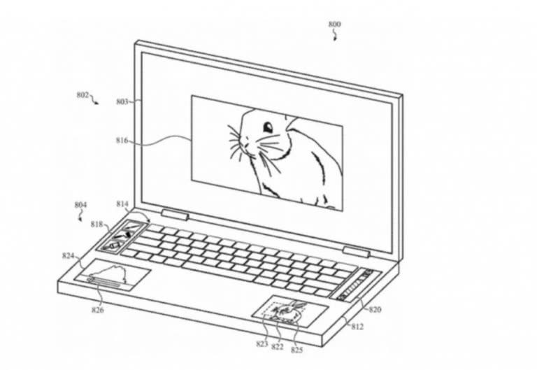 Один из вариантов применения вспомогательного дисплея также описывается в патенте. Экраном предлагается заменить существующий тачпад, дополнив его функцией вибро-отдачи и другими дополнительными возможностями.