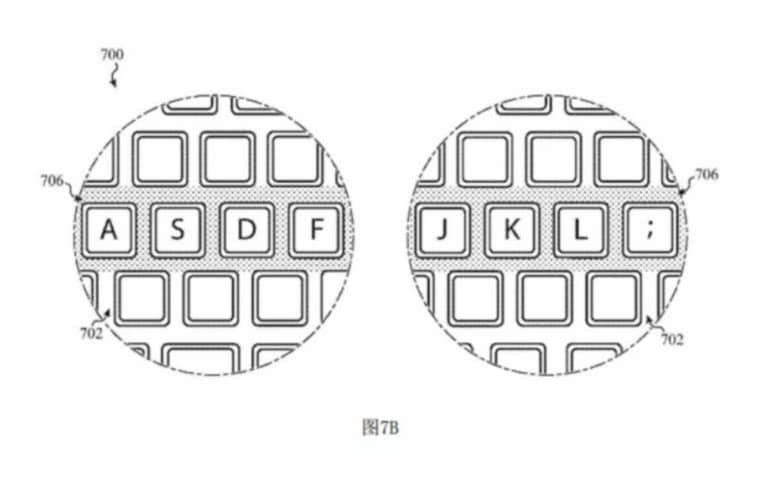 Изменения могут коснуться и клавиатуры. Вокруг клавиш, как сказано в патенте, могут располагаться специальные области, реагирующие на нажатия.