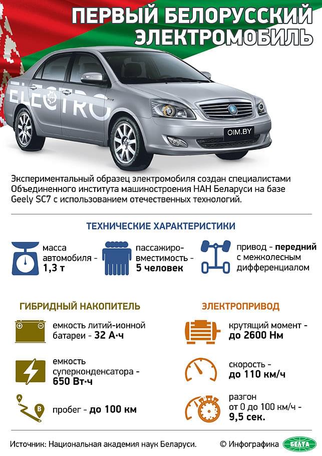 Как сообщает издание Auto.tut, белорусский электромобиль был разработан на основе уже существующей машины Geely SC7 из Китая, но вся электросистема белорусского автомобиля была создана усилиями белорусских ученых. На данный момент важным является вопрос о том, где в Беларуси станет возможным серийное производство таких автомобилей. Из возможных вариантов это организация конвейерного цеха на базе НАН, БелАЗ или «Белкоммунмаш». Однако сначала необходимо проанализировать какое предприятие окажется выгоднее всего. Однако как подчеркивает председатель президиума НАН Владимир Гусаков, это никак не повлияет на тот факт, что белорусскому электромобилю несомненно быть.
