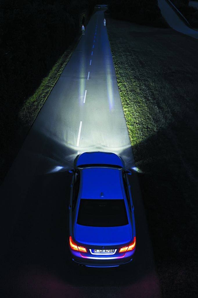 На светодиодах работает и Dynamic Light Spot (система динамического точечного освещения) – фирменная новинка от BMW. Автоматика обнаруживает пешехода и направляет на него свет, точно указывая на потенциальную опасность. Подсказка появляется раньше, чем ближний свет фар сможет осветить объект. Следовательно,