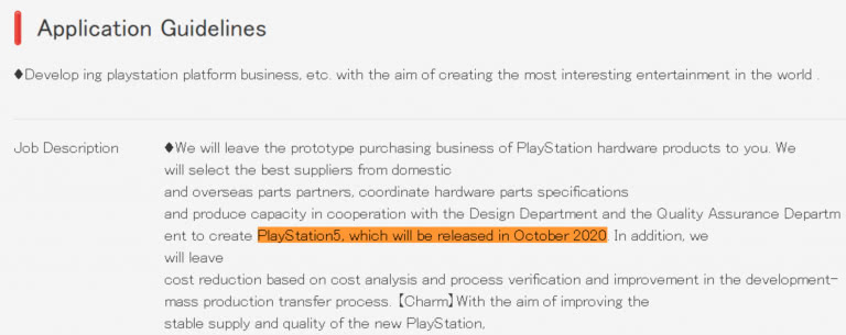 Теперь же в интернете объявился скан документа с вакансией, который разместила, судя по всему, сама компания-производитель PlayStation. В числе прочего, в документе сказано, что релиз пятого поколения консолей от Sony состоится в октябре 2020 года.