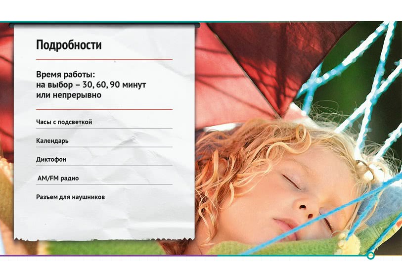 А для тех, кто просто хочет отдохнуть после насыщенного дня или не может уснуть в путешествии из-за смены часовых поясов, американская компания Hammacher Schlemmer в сотрудничестве с экспертом в нейроакустике Джеффри Томпсоном придумала Travel Sleep Sound Generator – плеер, который генерирует звуки, навевающие сон. Устройство воспроизводит один из 18 «расслабляющих» звуков – шум моря и дождя, пение птиц или перезвон бамбуковых палочек. Ничего сверхъестественного нет, но уснуть действительно помогает. Проснуться, кстати, тоже – «усыпитель» оснащен еще и будильником.