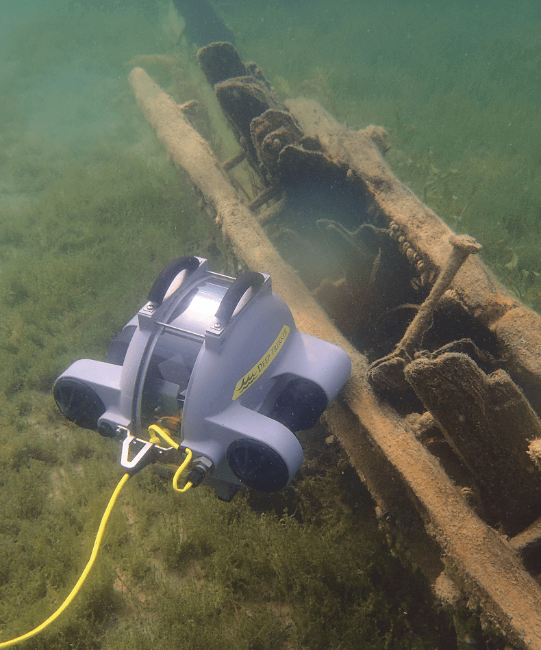 нагрузку. Дрон может работать на глубинах до 300 м. Видеорэй приводится в движение с помощью двух двигателей в кормовой части. Аппарат может двигаться в обратном направлении и разворачиваться на месте. Как и Дип Трекер, ТНПА крепится к концу троса. Видеорэй может работать даже при сильном течении и плохих погодных условиях. Дрон успешно используется для поиска улик и тел погибших, скрытых в воде, а также для поиска затопленных боеприпасов и обеспечения безопасности в портах. Еще Видеорэй помогает проводить научно-исследовательские работы: аппарат использовался для изучения антарктических вод, а также для фиксации изменений рифов и наблюдений за рыбой.