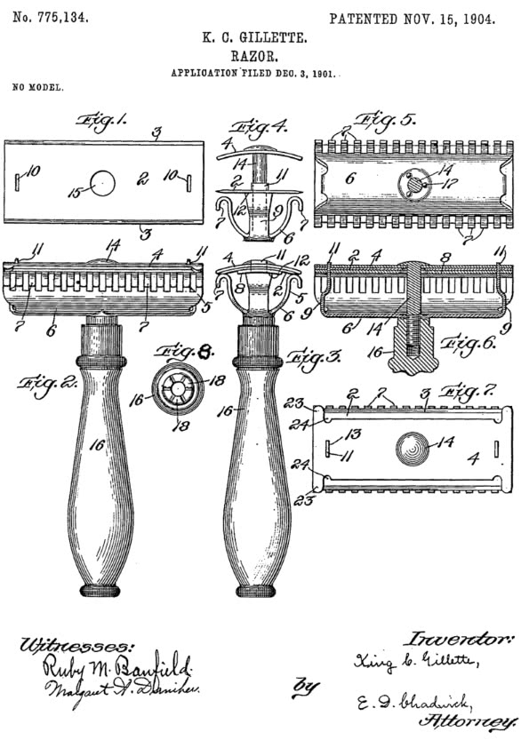 У всех новых бритв существовал один неприятный недостаток – лезвие приходилось затачивать. Это отнимало время, поэтому также раздражало пользователей. И так в 1901 году мир увидел патент на безопасную бритву с одноразовым лезвием, а подал её бывший коммивояжер Кинг Камп Жиллетт.