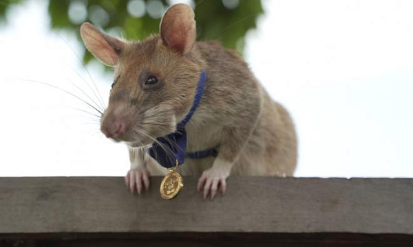 Человек с металлоискателем потратит четыре дня, чтобы найти все заряды на площади размером с теннисный корт. Гамбийская сумчатая крыса справится с этой задачей за полчаса. Её веса – чуть более килограмма – недостаточно, чтобы активировать взрыватели мин и снарядов, поэтому участие в разминировании безопасно для грызуна. Рекордсменом в этом деле является уроженец Танзании Магава: за семь лет службы он нашёл 39 мин и 28 неразорвавшихся снарядов на территории Камбоджи. За это крыс получил Золотую медаль PDSA (англ. People's Dispensary for Sick Animals), которая является аналогом Креста Георга для животных.