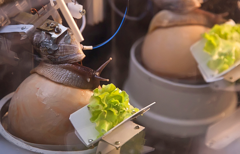 «Водоканалу» помогают не только раки, но и африканские улитки. Они следят за составом дымовых газов, выходящих с заводов сжигания осадка. Система примерно та же, что и у раков: специалисты следят за активностью и сердечным ритмом улиток, чтобы вовремя заметить риск случайных выбросов или вредных веществ горения. Улитки дышат воздухом с примесью дыма из трубы завода, в то время как к их раковинам прикреплены датчики сердцебиения и двигательной активности. Система оценивает самочувствие животных и при неполадках дает сигнал.