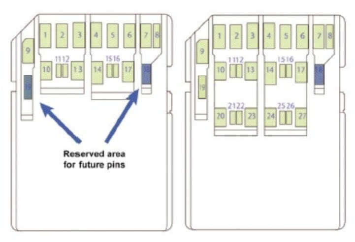 Новые карты получат целых три ряда контактов. При работе на скорости до 2 ГБ/с карта будет использовать лишь два из них. Все понадобятся только при передаче данных на максимальной скорости и при использовании накопителя с соответствующим оборудованием, поддерживающим новый стандарт на аппаратном и программном уровне.