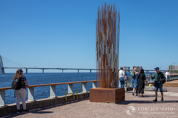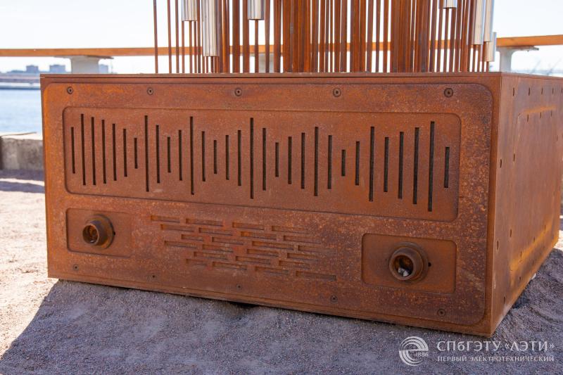 «ЛЭТИ выступил с инициативой создания скульптуры. Ученые ЛЭТИ разрабатывают много разных решений с использованием искусственного интеллекта: робот-художник, беспилотники, у нас есть и полигон, который позволяет моделировать сложное поведение беспилотных автомобилей и решать высокоуровневые задачи. Для разработки памятника искусственному интеллекту мы привлекли креативных молодых людей, разбирающихся в музыке, скульптуре и искусственном интеллекте. Совместная работа команды людей с разными компетенциями позволила очень быстро сгенерировать плодотворную идею и реализовать ее. Идея формирования мелодий за счет силы и направления ветра принадлежит ЛЭТИ. Искусственный интеллект, встроенный в эту скульптуру, также создан в ЛЭТИ», – прокомментировал руководитель научного и образовательного направлений СПбГЭТУ «ЛЭТИ» Михаил Куприянов.Постамент скульптуры обыгрывает ретро радиоприемник, из которого, как волны, исходят 144 прута, призванных создавать мелодию при соприкосновении от дуновений ветра. С помощью технологии звукоснимателя и алгоритмов искусственного интеллекта исходящие звуки преобразовываются в электронную музыку, которая транслируется в прямом эфире онлайн радио университета и непосредственно из динамика встроенного в постамент скульптуры.