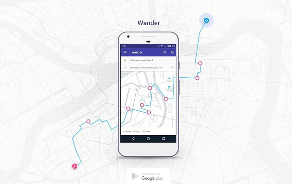 Петербуржец Максим Илюкович cоздал приложение-путеводитель Wander — в нем автоматически генерируются маршруты между заданными точками. В базу приложения внесены туристические объекты и поделены по четырем категориям — «Музеи», «Парки», «Памятники» и «Церкви». Если задать начальную и конечную точки, приложение само проложит «умный» маршрут между ними, учитывая максимальное количество достопримечательностей. По каждой из достопримечательностей в приложении есть небольшая справка, а также ссылки на «Википедию» и Google.