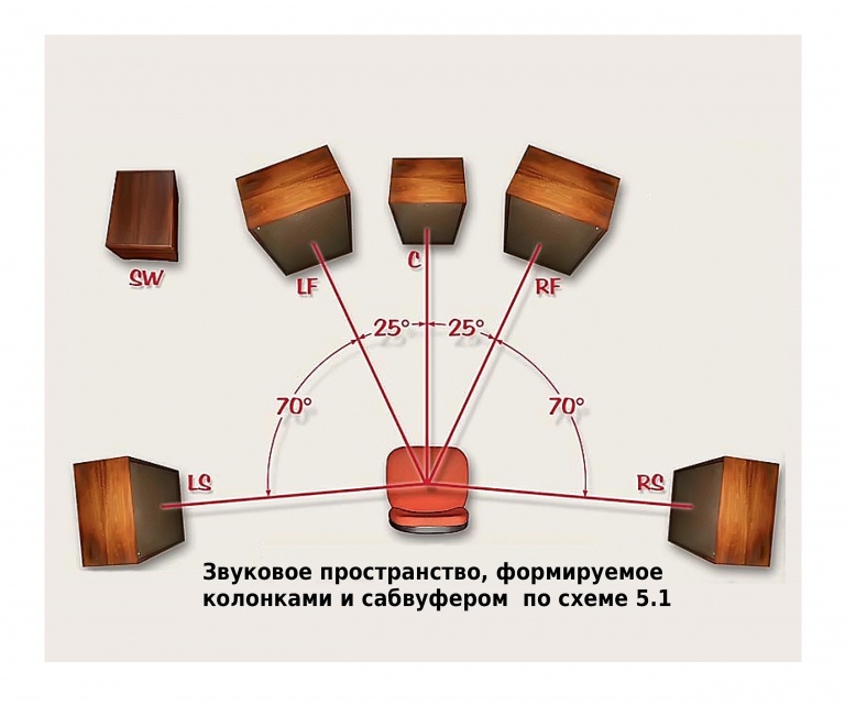 А ведь возни с ними много! Взять хотя бы ставшую стандартом систему «5.1», требующую шести (!) излучателей звука, из которых только один некритичен к выбору места расположения – сабвуфер. Остальные требуют установки в строго определенных местах, формируя сравнительно небольшую зону проявления эффекта. Конечно, в рекламной квартире среднесчастливой семьи «манагеров» с 50-метровой кухней (заметили, что самые ходовые продукты на таких кухнях – бульонные кубики и лапша типа «Доширака»?) – «5.1» можно поставить хоть в туалете, чтобы и под ободком унитаза бактерии не слишком скучали.
