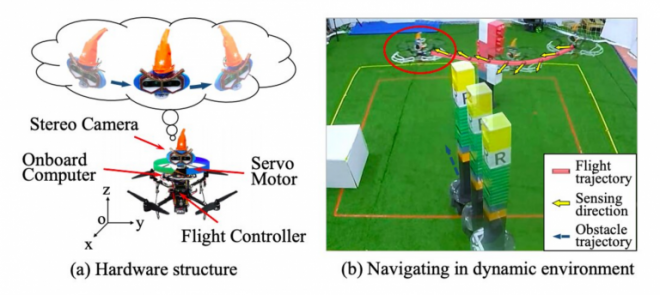 Такая особенность строения тела ночных хищных птиц вдохновила инженеров из Шанхайского университета Цзяотун на разработку системы облёта препятствий. В сочетании с передовой разработкой компьютерного зрения механическая «голова» с сервоприводом и камерой позволяет квадрокоптеру «видеть», что происходит вокруг.