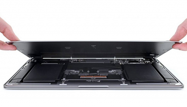 Упростили и замену аккумулятора. Теперь он не прижат со всех сторон кабелями, поэтому можно заменить АКБ на макбуке самостоятельно, просто сняв крышку. Единственное, что затрудняет демонтаж батареи — отличный клей, которым она закреплена на корпусе. Динамики, к слову, тоже приклеены намертво, что несколько затрудняет полный разбор устройства.