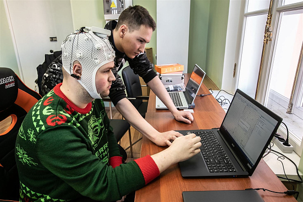 «Когнитивные исследования дают основу для моделирования процессов обучения искусственного интеллекта. Мы его не обучим, не зная, как учится человек. Если мы не понимаем, как воспринимается информация потребителей этого искусственного интеллекта, то это будет абсолютно чуждая для нас вещь. В лаборатории мы создаем интерфейс «человек-машина». С помощью программ человек взглядом может управлять курсором, взаимодействовать с различными устройствами того же умного дома. Второе – управление мыслью, с помощью определенного комплекса мы можем исследовать процессы концентрации. Для создания обучения нового уровня у нас есть VR-камера, VR-шлем и другое оборудование. Благодаря этому мы будем не только снимать, не только монтировать, но и знать, как и куда человек смотрит в VR-среде», – поделился руководитель Лаборатории когнитивных исследований, генеральный директор и совладелец ООО «РуФилмс» и группы компаний «РуФилмс» Алексей Козуляев.