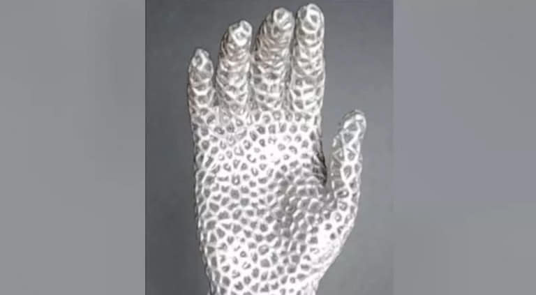 Сплав, из которого создана рука, состоит из висмута, индия и олова. Такой сплав отличается низкой температурой плавления, поэтому в жидкое состояние он переходит уже при 62 градусах Цельсия. Такое свойство позволяет использовать его в ядерной промышленности, но американские учёные решили соединить металлическую решётку и резиновую подложку при помощи 3D-печати. Теперь каркас обеспечивает конструкции целостность и прочность.