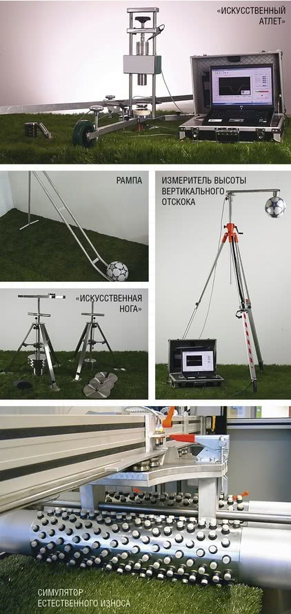 Принцип действия: имитирует движения среднестатистического игрока, датчики замеряют необходимые показатели.