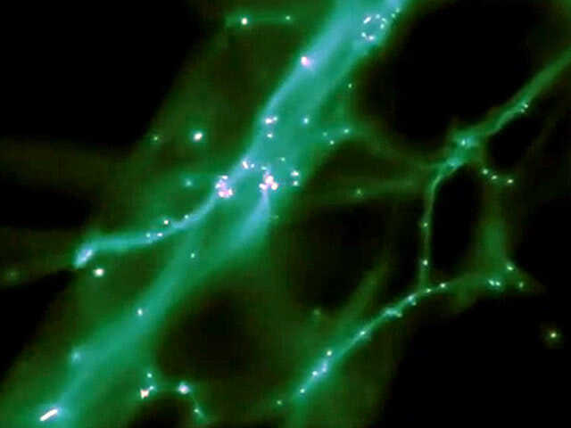 На видео показан процесс зарождения галактик, начиная с момента после Большого Взрыва, и на протяжении последующих нескольких миллиардов лет. Видно формирование и взаимодействие нескольких спиральных галактик, очень похожих на те, что существуют в реальной Вселенной.