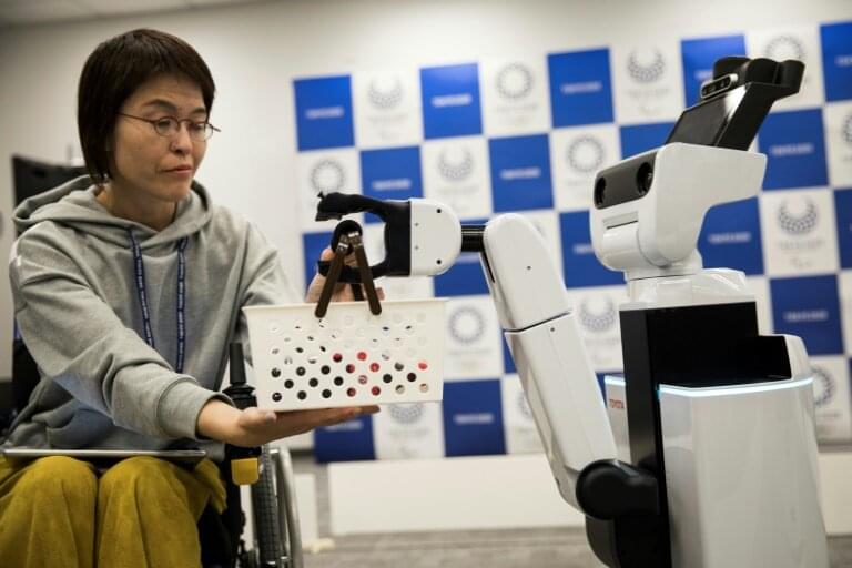 произнес: «Привет всем. Я робот поддержки образа жизни. Я принесу вещи для вас. У меня также есть раздвижная рука, которая может поднять вещи, если вы уроните их». Он и его товарищи во время Олимпийских игр будут помогать людям с заказом еды и напиткоы, которые можно будет сделать на планшете, прикрепленном к роботу.