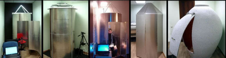 Основываясь на исследованиях Н.А. Козырева академик РАМН В.П. Казначеев разработал конструкции, которые назвал «Зеркала Козырева». Зеркалами эти конструкции называются условно. Это в основном алюминиевые конструкции (Н.А. Козырев сделал вывод, что алюминий обладает особенными свойствами, и алюминиевое покрытие отражает не только свет, но и время) в форме спирали, которые, по утверждению ученого, способно отражать не только физическое время, но и может фокусировать некоторые виды излучений, подобно линзам. Самая распространенная конструкция, с которой проводилось наибольшее число экспериментов – это зеркальный лист полированного алюминия, который свернут особым образом – в форме спирали в полтора оборота по часовой стрелке. Внутри этой конструкции ставится кресло для добровольца и специальная аппаратура. На голову одевается «шлем», похожий на кастрюлю, с датчиками.