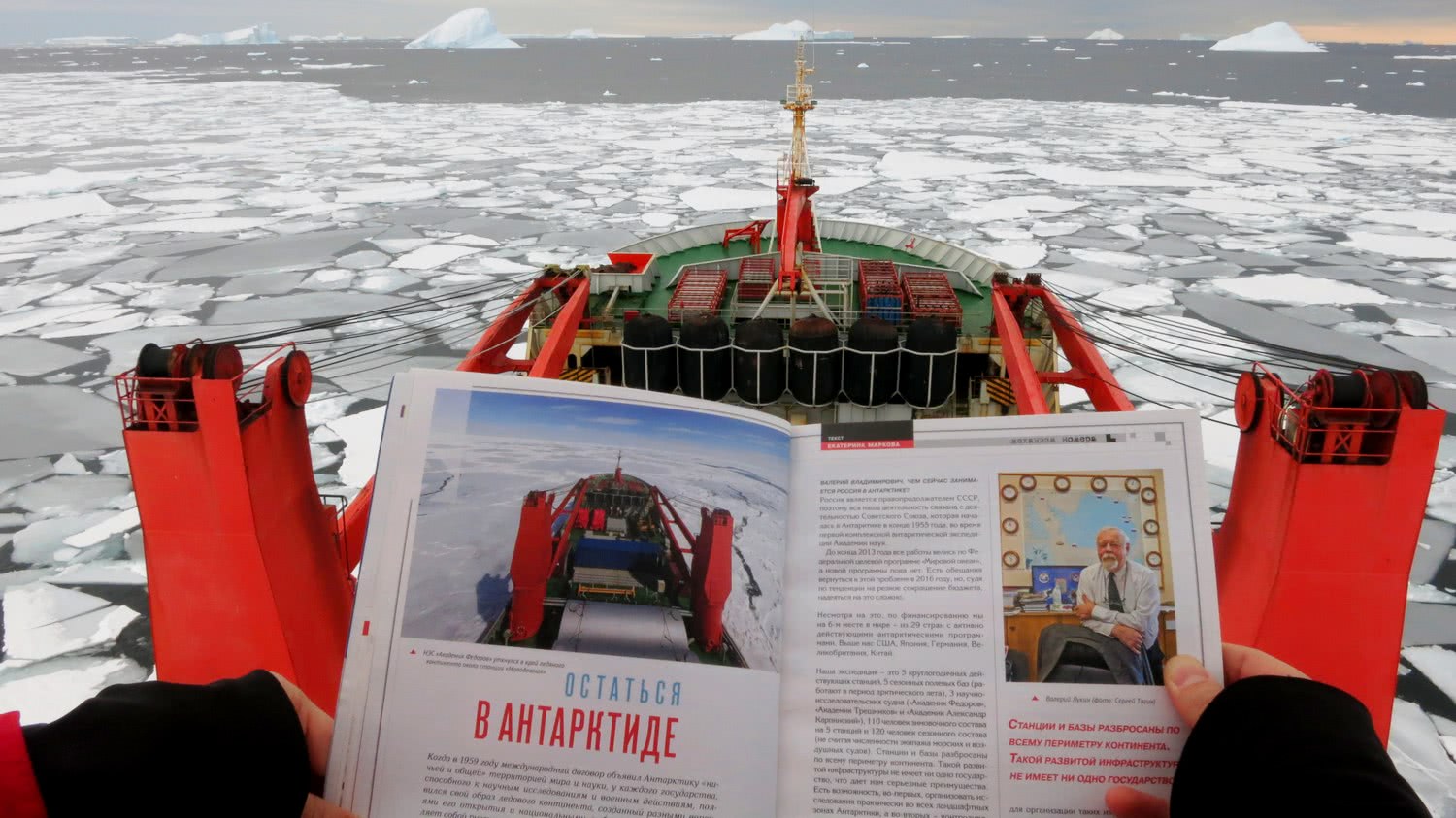 Моя история лишена случайностей. Журнал этот был подарком от подруги-коллеги из РГГМУ, которая сама грезит экспедициями и, конечно же, Антарктикой. Принеся мне журнал примерно за неделю до моего отъезда, она просто светилась от счастья. "Смотри! Смотри! Как здорово! Как "в тему" прямо!" Я тоже порадовалась, маме показала - её порадовала. Ну и само собой разумеется, мы не удержались от того, чтобы сделать "фотографию в фотографии"!