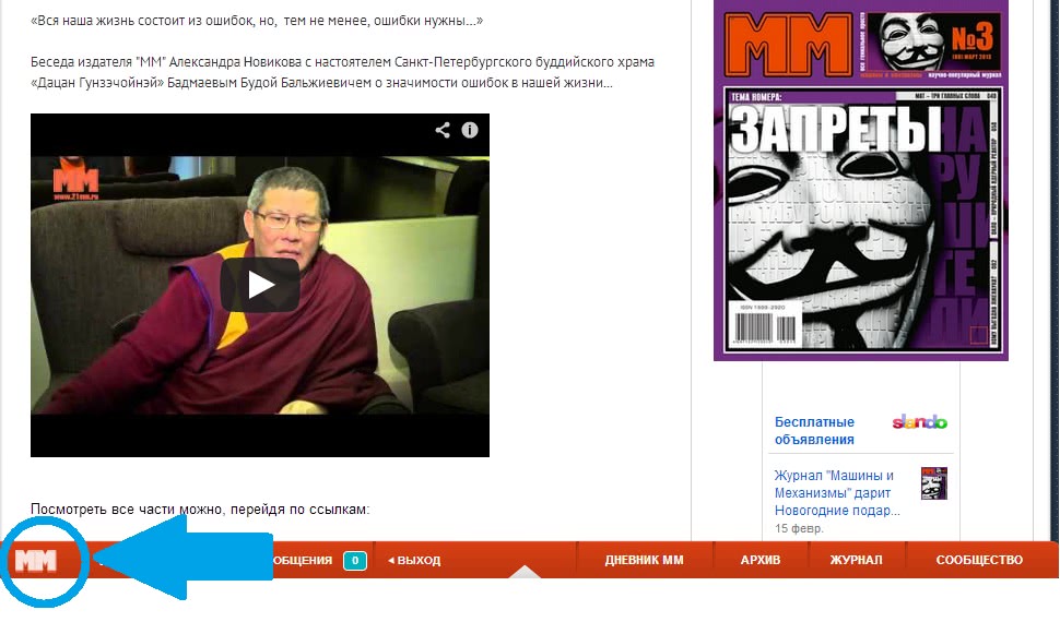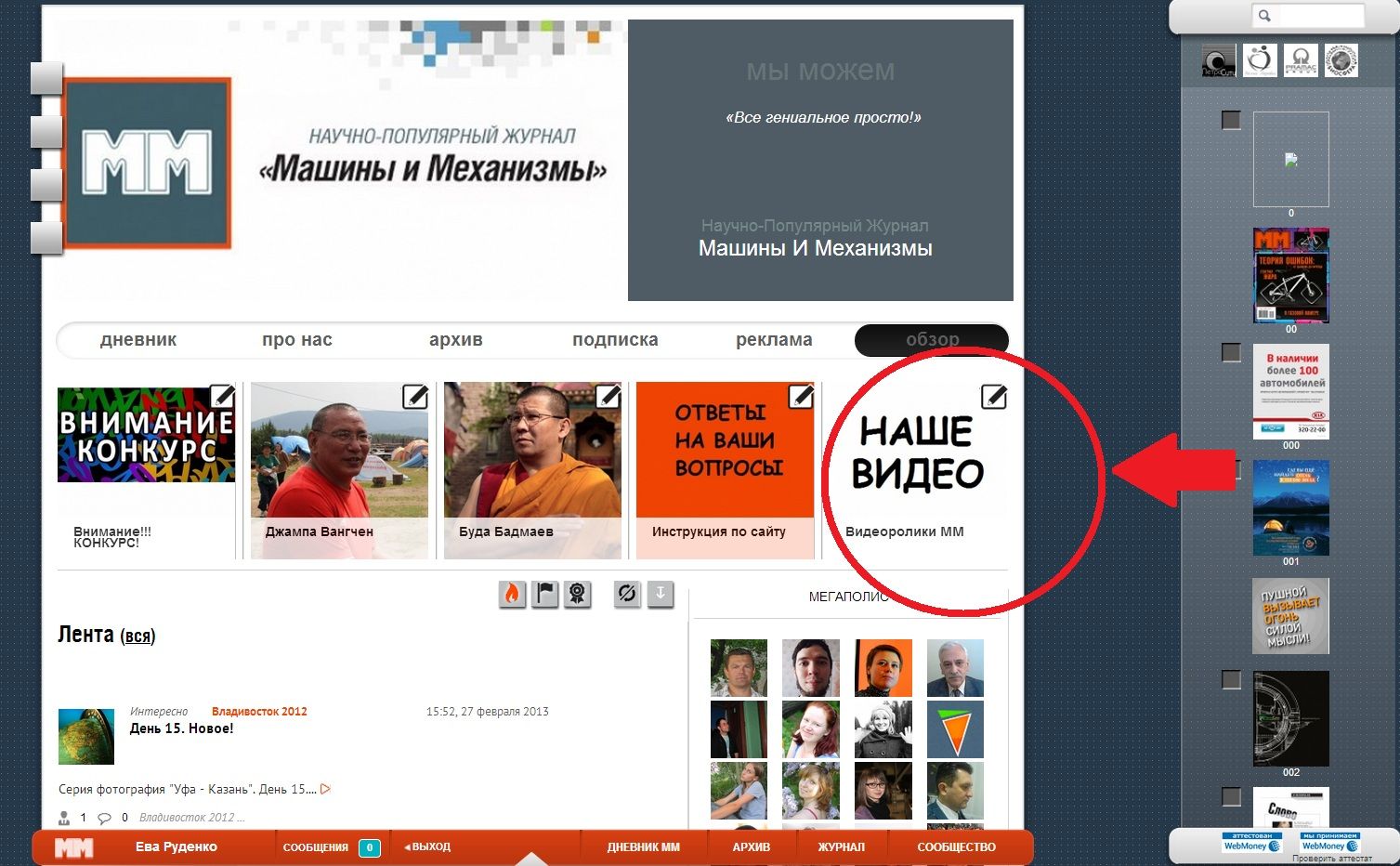 На главной странице сайта нажмите кнопку «Сообщество» – вы окажетесь в блоге «ММ». Там, под шапкой страницы в пятом квадрате вы увидите «НАШЕ ВИДЕО». Нажав на квадрат, вы попадете в каталог (видеоархив), в котором содержатся ссылки на все видеоролики.