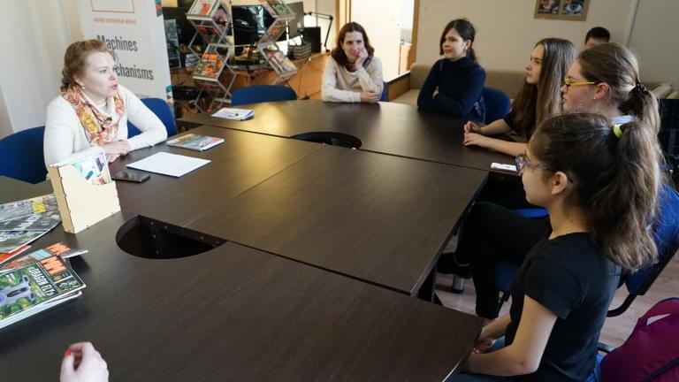Чтобы сравнить работу над номером своего издания с тем, как работает настоящая взрослая редакция научно-популярного журнала, детский пресс-центр пришел на экскурсию в ММ. Сначала за круглым столом обсуждали принципы создания журналистских текстов, а потом узнали много нового о шрифтах, инфографике и верстке на мастер-классе у дизайнеров ММ.