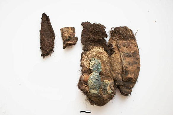 В гробу находился скелет мужчины, умершего, как определили антропологи, в возрасте 40 — 45 лет. У погребенного отсутствовала нижняя левая конечность, начиная с нижней трети бедренной кости, причем кость в нижней части имела следы слома с неровными краями. Как отмечает научный сотрудник отдела теории и методики ИА РАН Татьяна Шведчикова, не исключено, что на кости читаются следы хирургического инструмента, но окончательное заключение антропологи смогут дать только после лабораторных исследований. На костях правой ноги отмечены многочисленные повреждения.