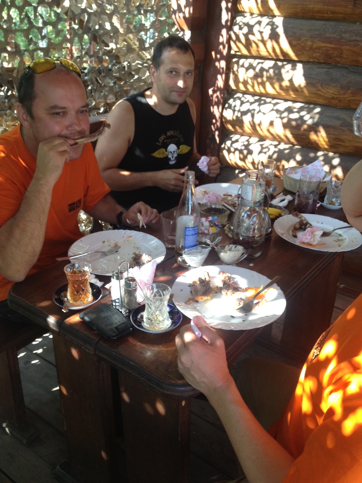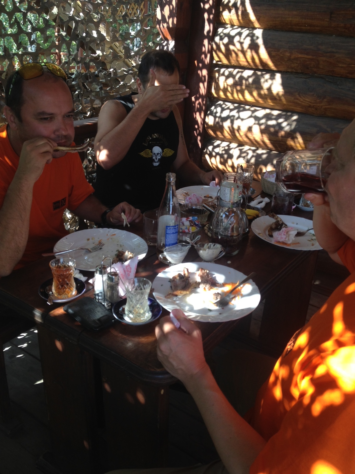 Решили в дороге перекусить. Но местная баранина оказалась не очень и... мало..) Жадины..)))