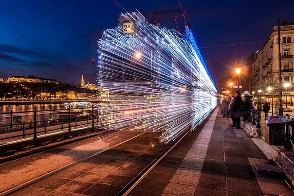 Каждый год в Будапеште обычные трамваи покрывают светодиодными лампами, и получается настоящее чудо.