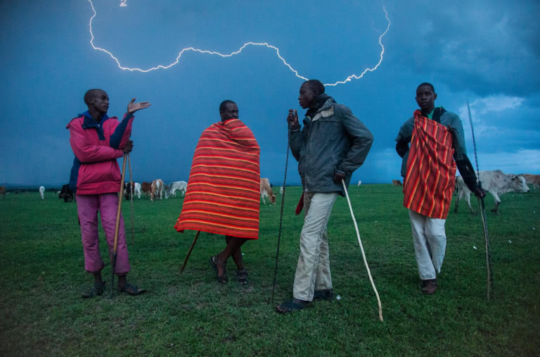 Эти масаи вытесняют крупный рогатый скот и овец из их деревни в заповедник Масаи Мара, сокращая корм для дикой природы, в которой охотятся львы и гиены. Хищники убивают скот, а пастухи мстят отравлением их туш. Фото Чарли Хамильтон Джеймс.
