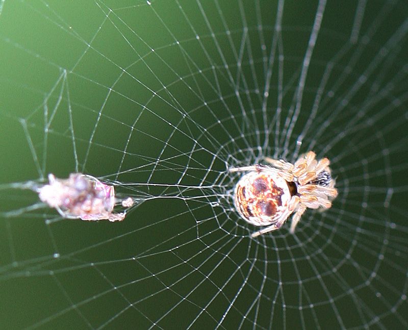 Муляж формируется на самом видном месте в паутине, чтобы оса (главный враг этих пауков) в первую очередь заметила копию.