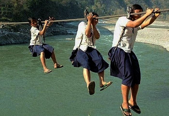Дорога в школу по мосту в аварийном состоянии, Суматра