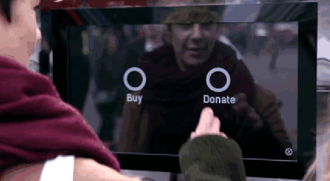 Но когда человек опускал монетку и выбирал размер, на экране появлялись несколько фотографий из жизни девушки, которую зовут Manisha (Маниша). Она работает на производстве одежды по 16 часов в день с оплатой всего 13 центов в час. Затем торговый автомат предлагал покупателям сделать выбор: купить футболку или сделать пожертвование в пользу улучшения условий труда рабочих.