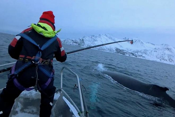 Перед тем, как погрузить камеру в воду, учёные прикрепили её к плавучей присоске вместе с радиопередатчиком и регистратором поведенческих данных. Последний был предназначен для регистрации скорости плавания и глубины погружения. В январе 2016 года исследователи использовали небольшую моторную лодку, чтобы приблизиться к горбатому киту у берегов Норвегии.